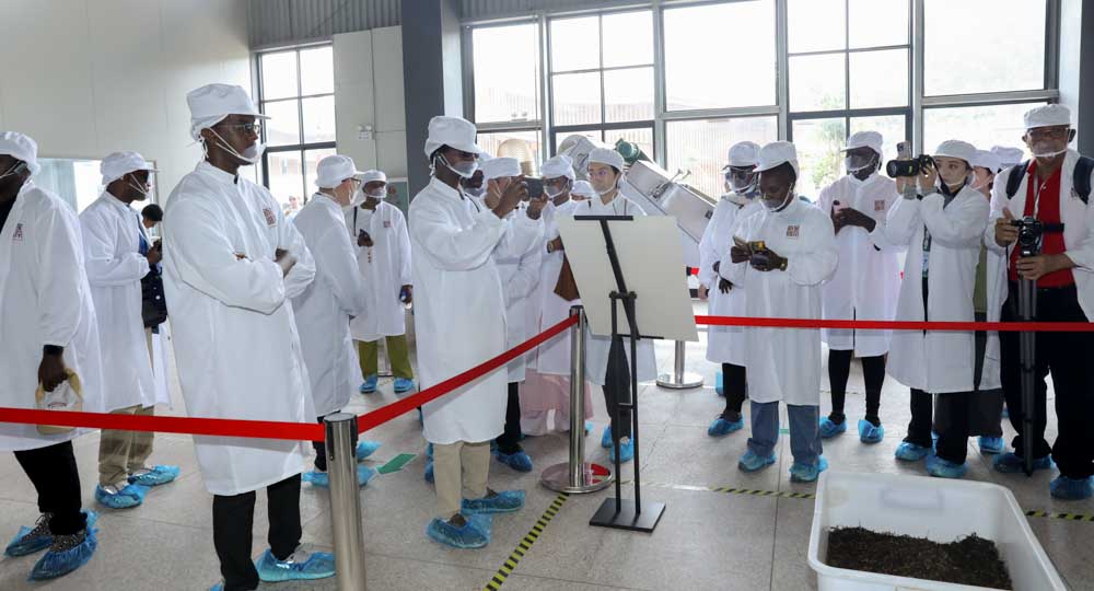 中外媒体记者走进茶山,参观新华国茶麻栗坡基地和标准化工厂,实地观摩茶叶杀青、揉捻、干燥等制茶工艺,并体验石磨压制茶饼,品鉴独具特色的麻栗坡烤茶。蔡展思董事代表新华国茶欢迎中外媒体记者来访,在接受媒体团集体采访中介绍了新华集团以科技创新推动茶产业升级、以规范化的运营模式和海外市场资源助力茶农增收的实践,表示新华国茶致力于将云南好茶推向世界。