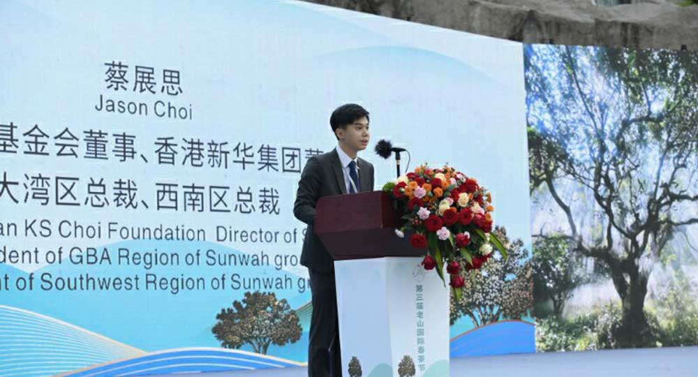 蔡冠深基金会董事、新华集团大湾区、西南区总裁蔡展思表示,麻栗坡拥有得天独厚的自然环境和资源禀赋,40余万株古茶树生长于此,为茶产业发展与茶文化传播奠定了坚实基础。他说“在外交部的信任和支持下,蔡冠深基金会已连续两年成功承办老山国际春茶节,并发挥资源、网络优势,从产品设计、生产、市场销售及宣传等环节,全方位协助麻栗坡茶产业发展。未来将通过创新赋能、产业升级等方式,共同推动老山茶出滇向海,实现当地经济高质量发展。