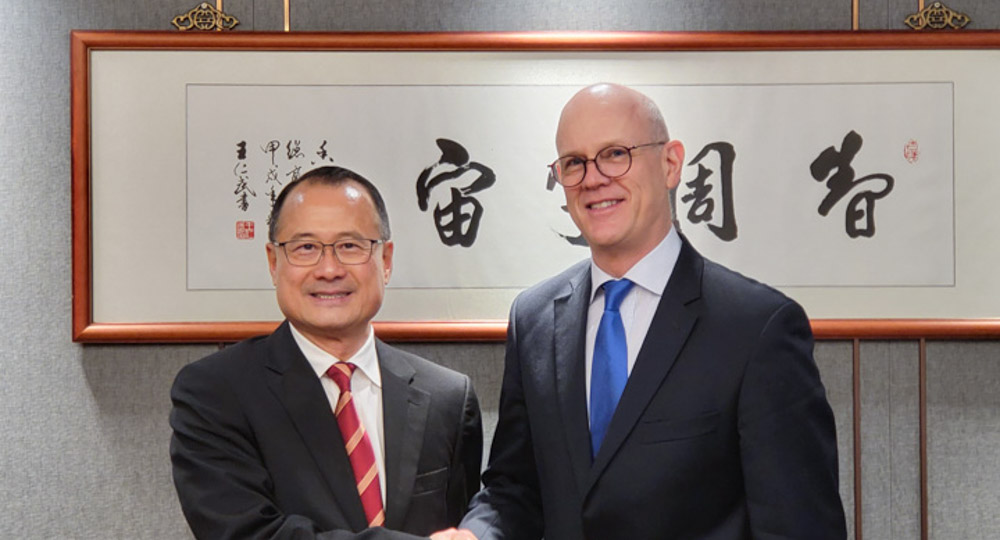 4月18日,全国政协常委、香港中华总商会会长、粤港澳大湾区企业家联盟主席、香港新华集团主席蔡冠深博士在香港会见瑞士驻港总领事Mr.Rolf FREI。蔡博士向总领事介绍了多年来新华集团和欧盟国家在不同领域的合作情况,亦乐见集团未来可以和瑞士就文化交流、珠宝黄金业务展开更深层次的合作。