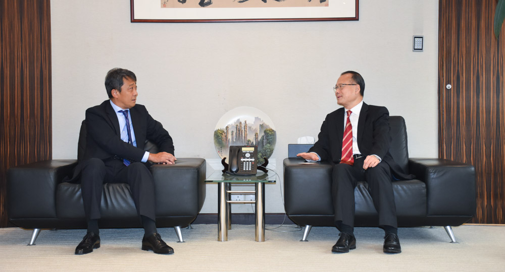 4月19日,集团主席蔡冠深博士在香港总部会见日本丸红香港华南有限公司社长永井祐介(Mr Yusuke NAGAI)、前社长岩尾圣士(Mr Seiji IWAO),就环保、大健康领域、电子设备等方面内容进行探讨,期待加强合作。