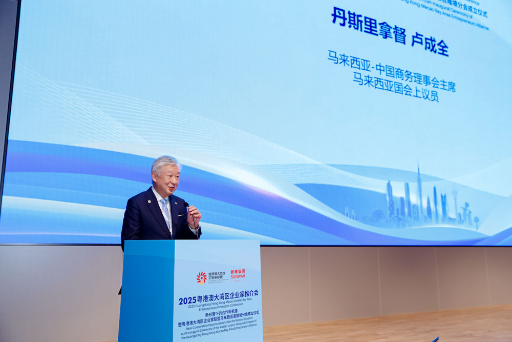 全国政协常委、粤港澳大湾区企业家联盟主席、香港新华集团主席蔡冠深博士在致辞中强调,李强总理刚刚结束的大马之行,提出了推动中国—东盟自贸区3.0版,以及将2026年定为 “中国—东盟建立全面战略伙伴关系5周年主题年” 等重大倡议,为中马关系和马来西亚同粤港澳大湾区企业家深化合作,带来了全新的视野及更广阔的空间。