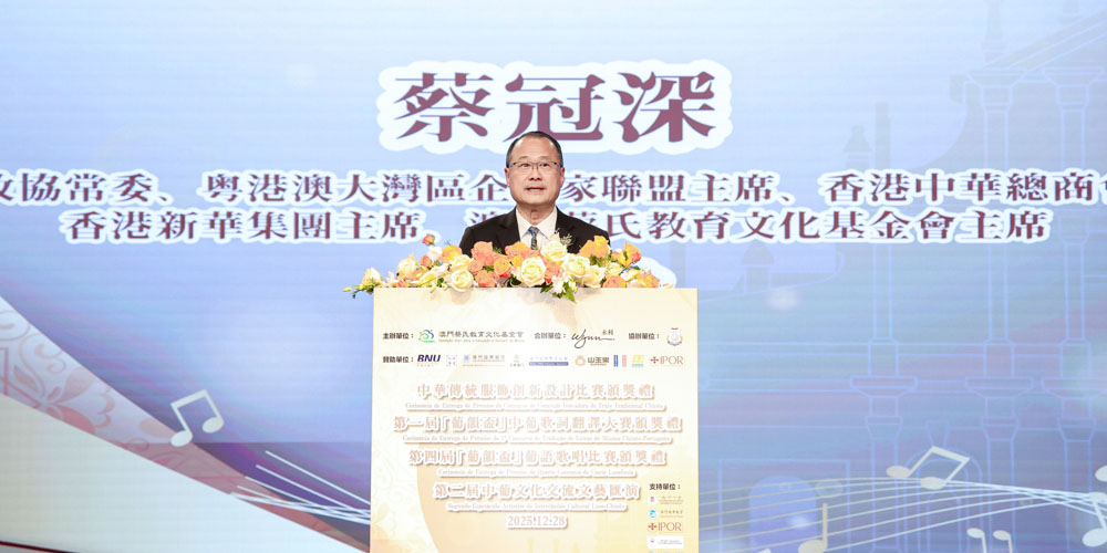 2025年12月28日,由澳门蔡氏教育文化基金会(基金会)主办的三项文化赛事——中华传统服饰创新设计比赛、第一届“葡韵杯”中葡歌词翻译大赛、第四届“葡韵杯”葡语歌唱比赛颁奖礼,及第二届中葡文化交流文艺汇演在永利澳门圆满举行。