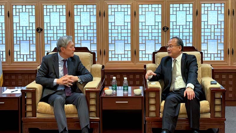 2026年1月20日下午,全国政协常委、粤港澳大湾区企业家联盟主席、香港中华总商会会长、京津冀环渤海企业家联盟主席、香港新华集团主席、蔡冠深基金会主席蔡冠深博士访问韩国驻华大使馆,卢载宪大使热情接待了蔡博士一行,并围绕深化经贸合作与文化交流深入探讨。