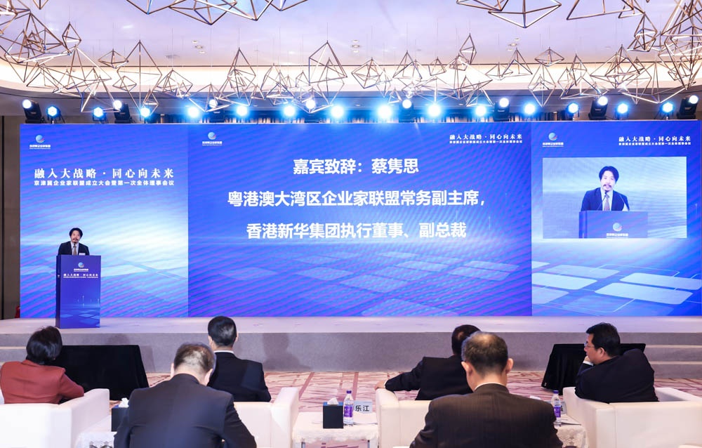 蔡隽思执董在致辞中赞扬京津冀企业家联盟成立欣逢其时。他表示,京津冀协同发展与粤港澳大湾区建设均为国家重大发展战略,两个区域紧密合作,对打造国内国外双循环经济发展新格局意义重大。他介绍,作为大湾区最有影响力的工商团体之一,粤港澳大湾区企业家联盟成立六年来,服务中外企业交流合作和对接等多方面工作均取得出色成果。希望以本次大会为新的起点,京津冀、粤港澳和长三角的企业家携手同心,共同促进彼此经贸、人文、科技、教育等多方面的深度交流融合,实现互利共赢。