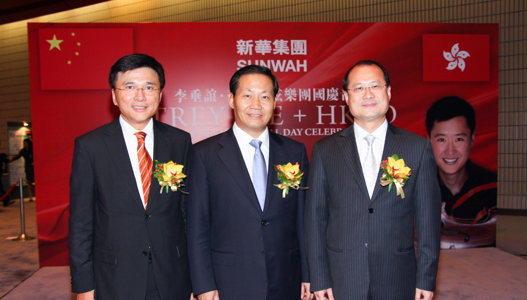 香港新华集团主席蔡冠深博士在音乐会前的庆祝酒会致辞时感谢各界友好光临一起庆祝国庆。国庆音乐会的三位主礼嘉宾为中央人民政府驻香港特别行政区联络办公室彭清华副主任、香港特别行政区政府财经事务及库务局陈家强局长、中华人民共和国外交部驻香港特别行政区特派员公署孙红霞主任。此外,34个国家的驻港总领事及领事包括美国及英国的总领事和香港领事团的主席均有出席是次庆祝活动。到场的知名人士还有杨振宁、梁振英及陈有庆等。