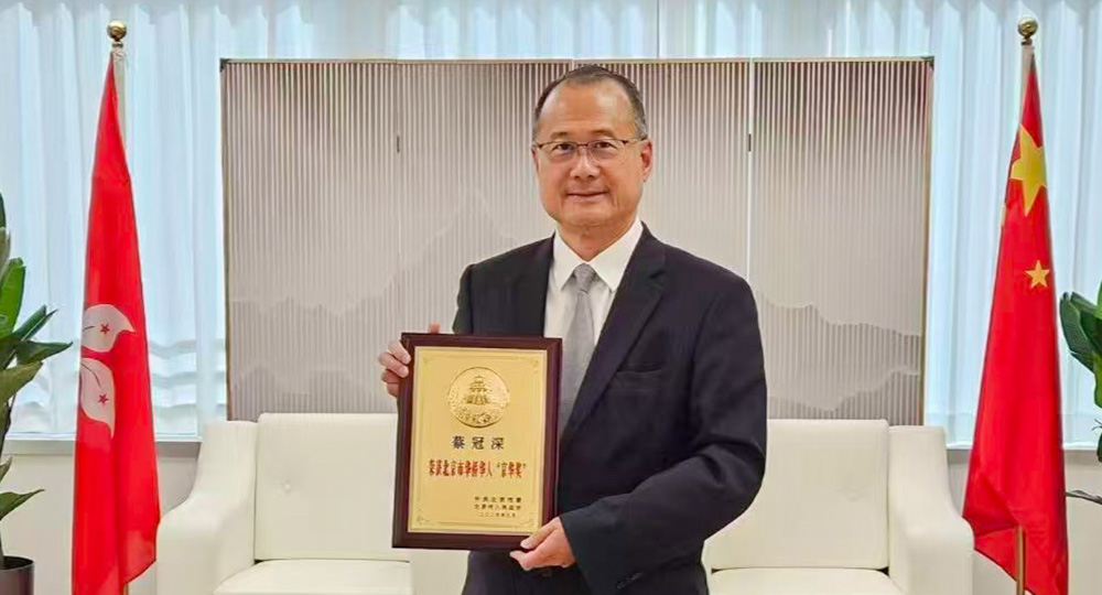 9月30日,第六届北京市华侨华人“京华奖”颁奖。北京市长殷勇向全国政协常委、香港中华总商会会长、粤港澳大湾区企业家联盟主席、香港新华集团主席蔡冠深颁发奖牌,以表彰其为首都建设发展作出贡献。