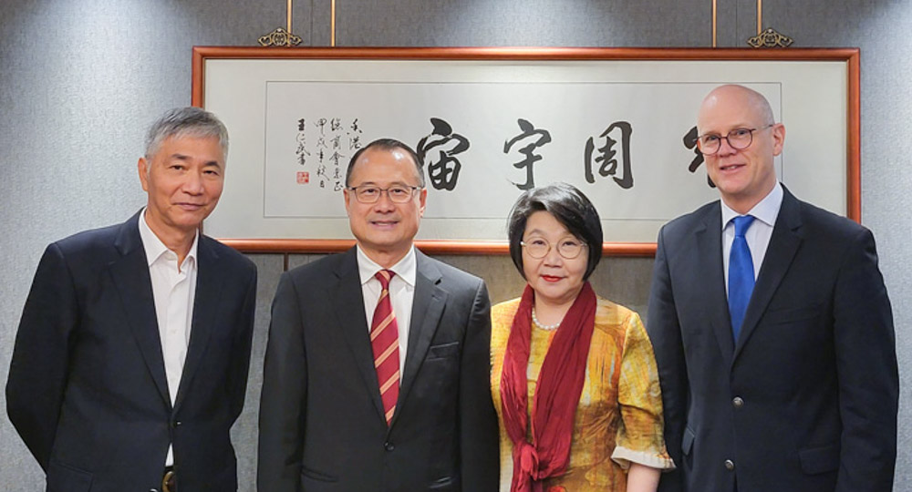 4月18日,全国政协常委、香港中华总商会会长、粤港澳大湾区企业家联盟主席、香港新华集团主席蔡冠深博士在香港会见瑞士驻港总领事Mr.Rolf FREI。蔡博士向总领事介绍了多年来新华集团和欧盟国家在不同领域的合作情况,亦乐见集团未来可以和瑞士就文化交流、珠宝黄金业务展开更深层次的合作。