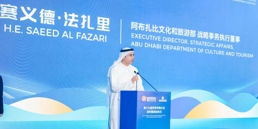 阿布扎比文化与旅游部战略事务执行董事赛义德・阿尔・法扎里致辞中表示:“阿布扎比作为阿联酋的首都,不仅拥有丰富的石油资源,更在文化旅游领域不断创新。同时,阿布扎比文化与旅游局将全力支持第十九届世界华商大会,并借此机会向全球华商展示阿布扎比的历史文化及现代化发展成就。”