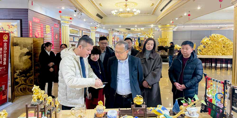 当天上午,在金陵金箔集团董事长蒋炯接待下,蔡冠深博士观了金箔艺术馆,了解馆藏工艺品的文化内涵与创作理念,并实地观摩了金箔非遗锻造全工序。在交流中蔡博士建议,以创新赋能金箔非遗,推动这一承载东方美学的文化瑰宝走向世界。据悉,金陵金箔集团正围绕“金箔+非遗+艺术品”的融合方向,探索文创转化路径,让传统工艺在当代焕发新生。