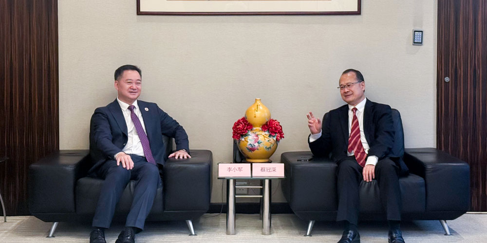 2026年3月31日下午,全国政协常委、粤港澳大湾区企业家联盟主席、京津冀环渤海企业家联盟主席、香港新华集团主席蔡冠深博士,在香港新华集团总部与到访的广药集团党委书记、董事长李小军一行座谈,就推动中医药及大健康产业国际化发展深入交流。
