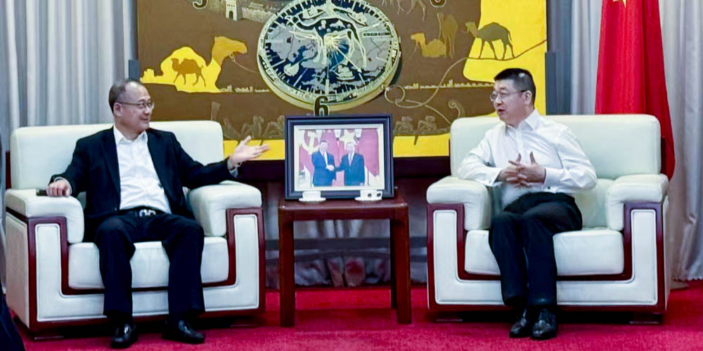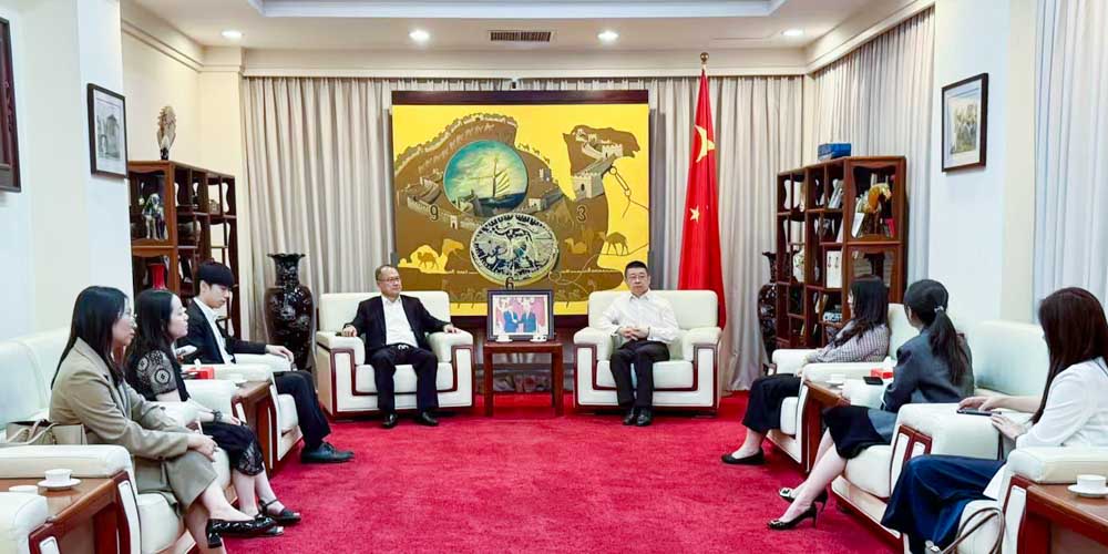 蔡冠深博士感谢总领事对新华集团在越发展的支持,并介绍“新华·中国企业出海合作中心(越南)”的进展,期望在领馆指导下进一步推动落地。双方围绕职业教育、医疗健康、数字金融、智慧港口等重点领域交换意见。