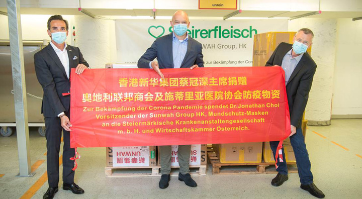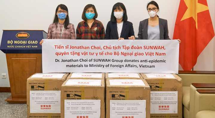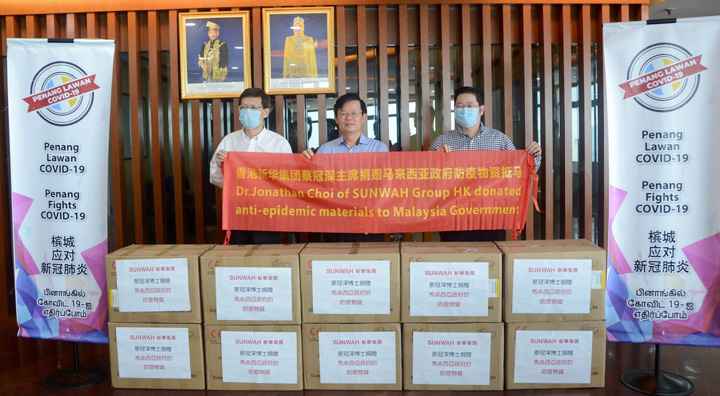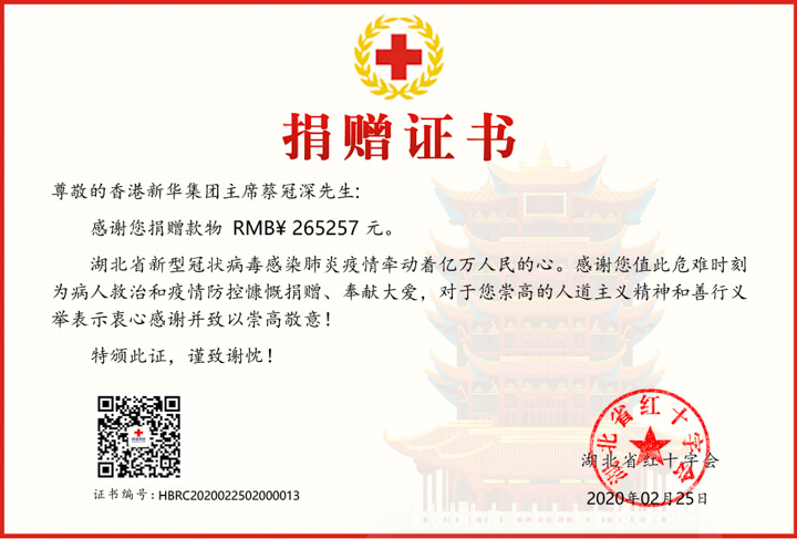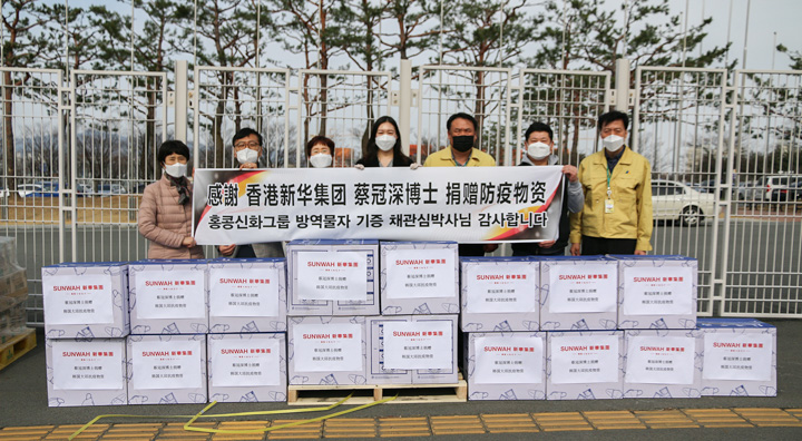 新冠疫情爆发以来,蔡冠深博士和新华集团第一时间从国内外多方采购抗疫物资用于捐赠,除捐赠给湖北、辽宁、北京、天津、香港、宁夏、江苏、四川等多个省市外, 还向包括法国、德国、西班牙、日本、韩国、加拿大、马来西亚、越南、柬埔寨等国家捐赠物资,以协助抗击新冠疫情。