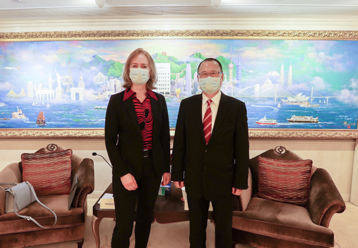 总领事表示,在香港有600多间德国企业,均被香港特殊的枢纽作用所吸引,同时对粤港澳大湾区的发展机遇深感兴趣。今年是中德建交50周年,她认为两国可在多个经济领域合作,包括绿色经济和可持续能源等。