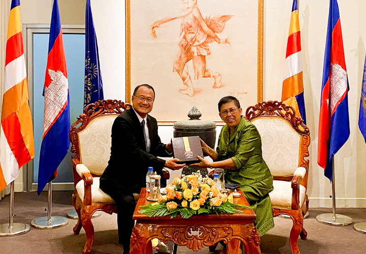 蔡博士表示,希望与柬埔寨文化与艺术部合作,于2023年在北京白云馆联办柬埔寨文化周,更好地协助柬埔寨文化艺术走向国际。此外,新华集团也将以柬埔寨手工艺术品作为礼品,向外界展示柬埔寨的传统文化。